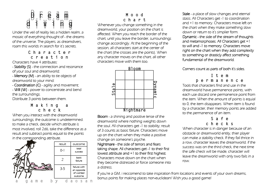 Very trippy ttrpg! I definitely like the aesthetic. Did you do the art of the guy with the sword?